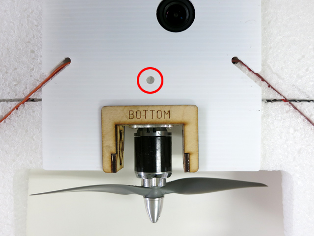 hatch aligns with the motor mount opening. Glue hatch to bottom of wing.