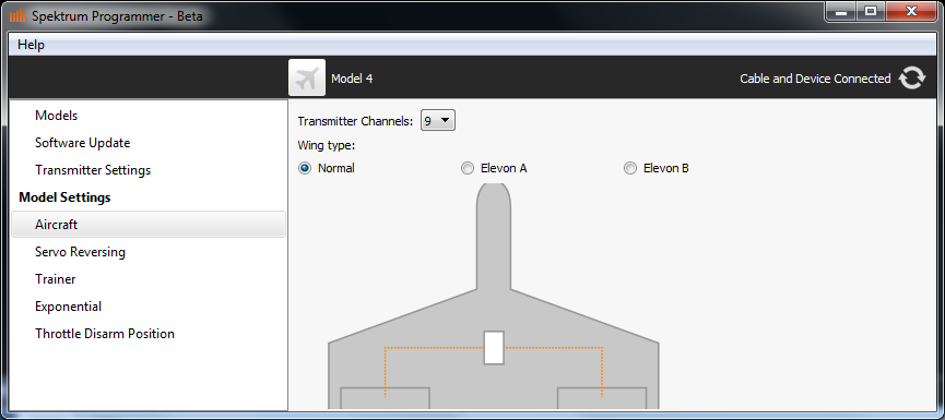Elevon mixing is handled by the Pixhawk. Create a new model with NORMAL