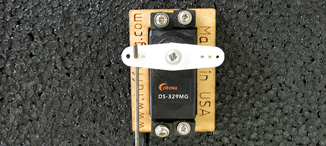- Widen the center hole in the servo arm with a 1/16" drill bit.