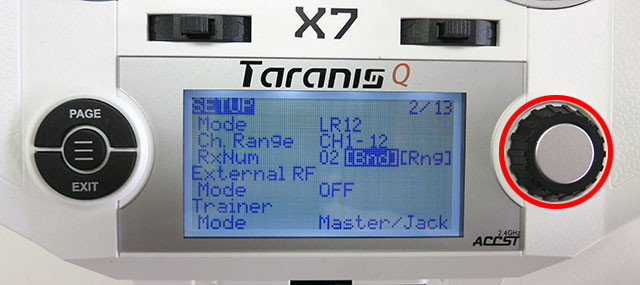 - Select Bnd to bind your X7 transmitter to your L9R receiver.
