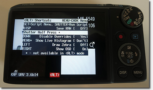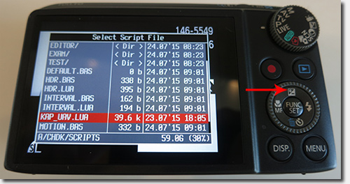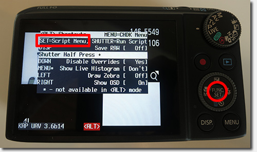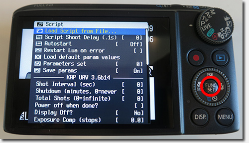 Copy kap_uav.lua into your (SD Card:)\CHDK\SCRIPTS.