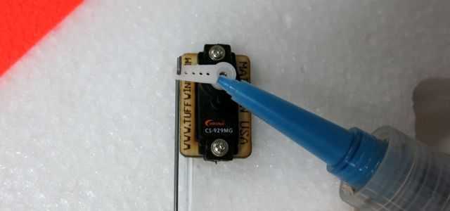 - First glue the control horns into slots.
