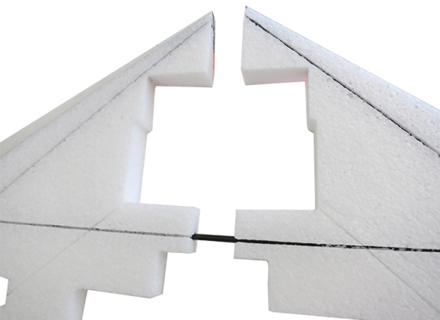 - Push the 3mm elevon spars into the spar grooves and glue one side.